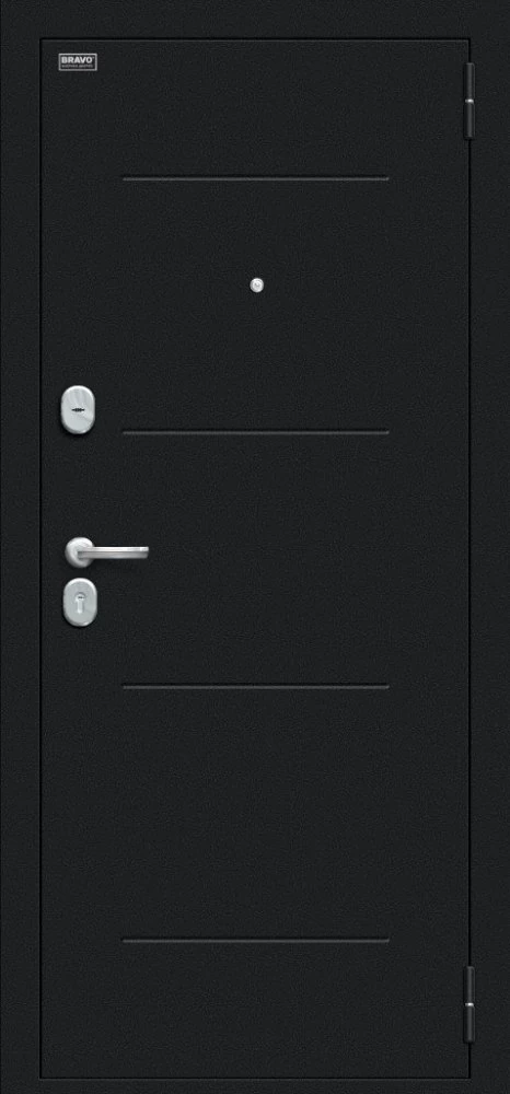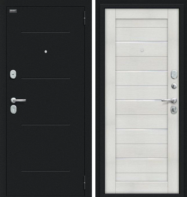 Надежная входная Браво Техно Kale Букле черное/Bianco Veralinga премиум класса по цене 33 481 руб. Большая толщина стали защитит от проникновения в ваш дом, квартиру или коттедж. Используется очень качественная фурнитура: замки, цилиндры, ручки, защелки. Покрытие и отделка двери изготовлено под внимательным контролем производителя. Дверь имеет долгий срок службы и гарантию.