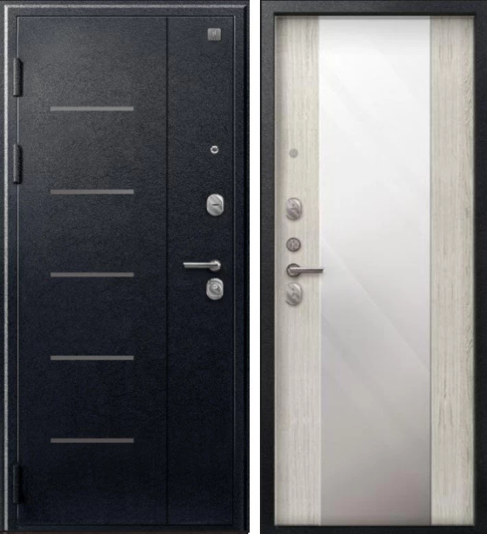 Надежная входная Дверь V-04 Черный муар - Полярный дуб Зеркало премиум класса по цене 41 831 руб. Большая толщина стали защитит от проникновения в ваш дом, квартиру или коттедж. Используется очень качественная фурнитура: замки, цилиндры, ручки, защелки. Покрытие и отделка двери изготовлено под внимательным контролем производителя. Дверь имеет долгий срок службы и гарантию.