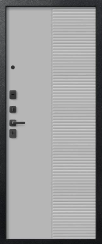 Надежная входная Дверь V-18 Черный муар + Кашемир графит - Кашемир сильвер премиум класса по цене 45 981 руб. Большая толщина стали защитит от проникновения в ваш дом, квартиру или коттедж. Используется очень качественная фурнитура: замки, цилиндры, ручки, защелки. Покрытие и отделка двери изготовлено под внимательным контролем производителя. Дверь имеет долгий срок службы и гарантию.